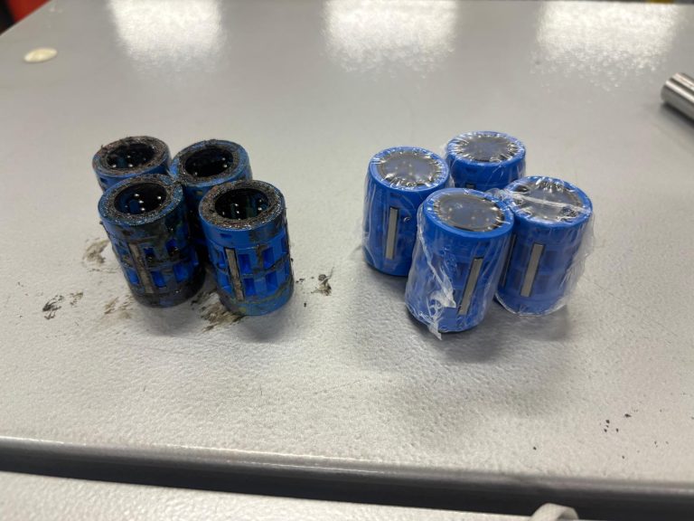 Bij die inspectie viel me op dat de lineaire assen behoorlijk waren versleten, de groeven stonden er al goed in. Ik heb toen voor de klant nieuwe assen geleverd, volledig op maat gemaakt volgens de specificaties van de machine. Ook heb ik gelijk de lineaire lagers geleverd en vervangen, zodat alles weer perfect samenwerkt.